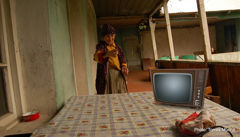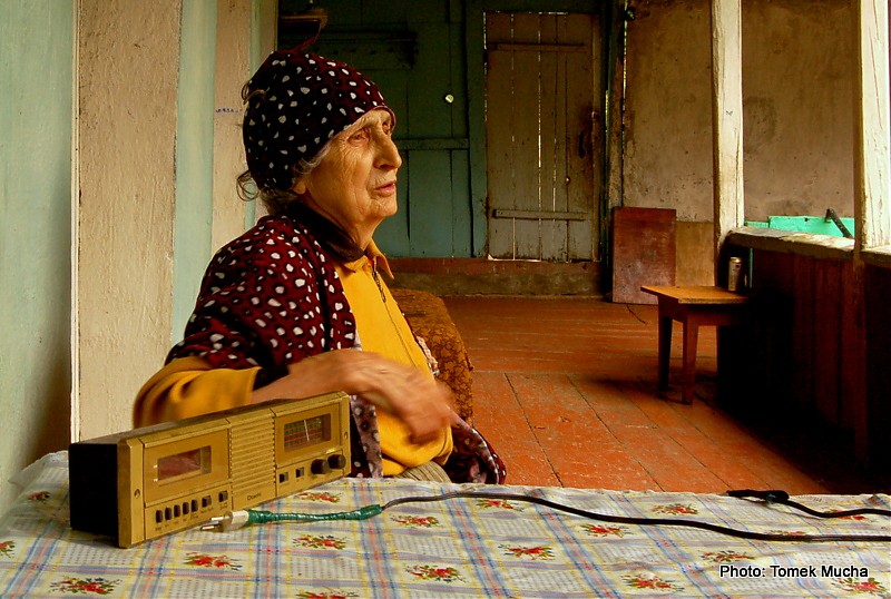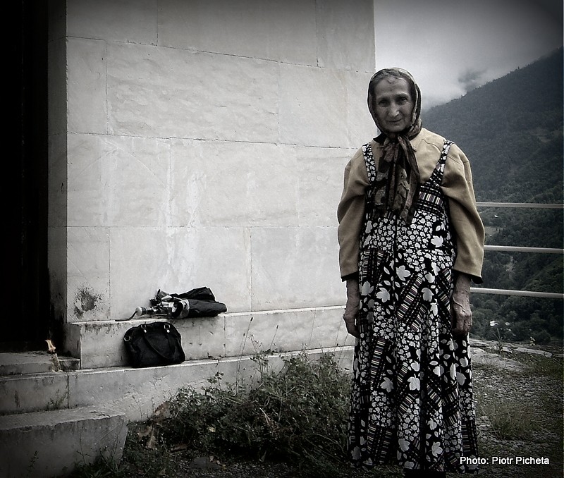 Nerwowo spojrzałem na Tomka. Jego aparat fotograficzny nawet nie drgnął. Mój także. A to była już jej druga próba. Pierwsza zakończyła się fiaskiem. Mimo usilnych prób, stare tranzystorowe radio nie wydało z siebie dźwięku. Niezrażona niepowodzeniem, wciąż chcąc się upodobać swoim gościom, przyniosła telewizor. I on milczał. Milczeliśmy również my, świadomi doniosłości chwili. Każde zbędne słowo mogło zburzyć tą dziwną, pełną pietyzmu, atmosferę. Nie chcieliśmy być gruboskórni. Nie mogliśmy być, ponieważ szok, który w nas wywołała, z całą swoją siłą, wciąż trzymał naszą trójkę w oniemieniu. Staruszka wreszcie dała za wygraną, usiadła i zaczęła swoją opowieść łamanym gruzińsko-rosyjskim.