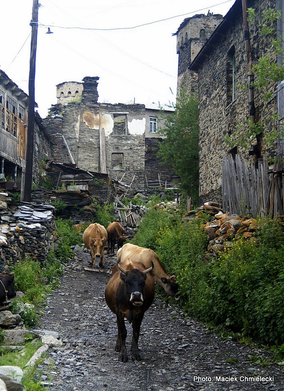 Do babci trafiliśmy całkiem przypadkiem. Staruszka wypatrzyła nas na tarasie swaneckiej wieży, gdy bezradnie kręciliśmy się przy zaryglowanych drzwiach. W Lentheki ostała się tylko jedna taka konstrukcja, a człowiek, który miał do niej klucze, był nieobecny. Gdy mieliśmy już odejść, z drewnianego domu u podnóża wieży wyszła ona. Od razu, bez wahania zaprosiła nas do środka. A my zaintrygowani, wciąż wierząc, że uda nam się dostać do wieży, przyjęliśmy zaproszenie. Gdybyśmy odmówili, byłaby to dla niej zniewaga. Gościny nie wolno odmawiać, bowiem „dla każdego Gruzina gość jest prezentem od Boga”. Co ciekawe, ta gościnność rozciąga się również na wrogów. Gdyby wróg zapukał i przekroczył próg gruzińskiego domu, i gdyby nawet przyniósł gospodarzowi na talerzu głowę jego syna, nie wolno mu wyrządzić krzywdy. Nie wtedy, gdy przychodzi w gościnę. Brzmi to trochę jak fantasmagoria, ale tak właśnie jest. Dom to świętość, którą celebruje wspólny posiłek.